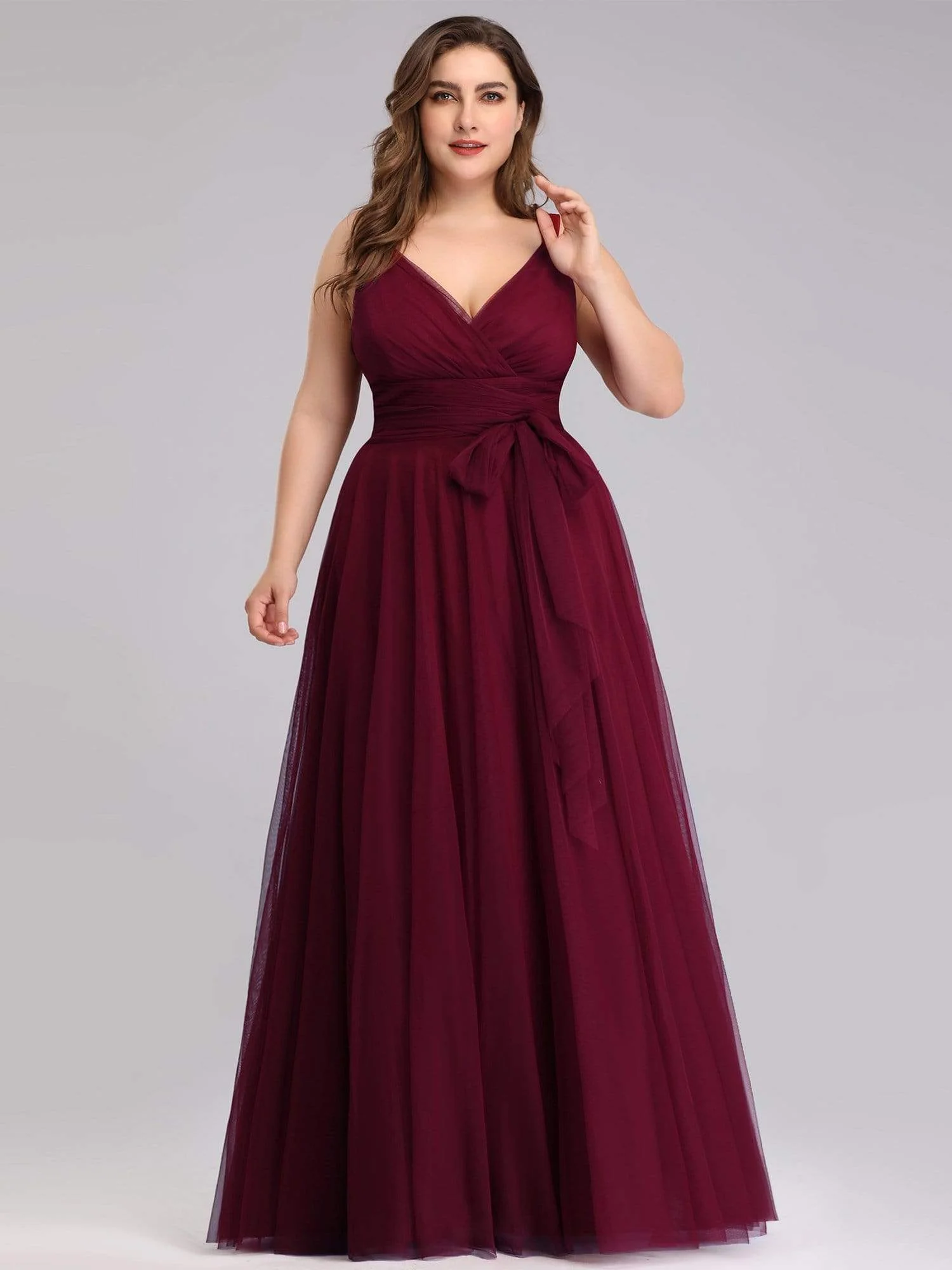 Plus Size Maxi Long Double V Neck Tulle Bridesmaid Dresses